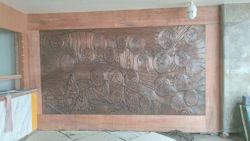 新都區中醫藥材市場紫銅浮雕 地雕 玻璃鋼人物雕塑